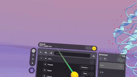 The Scenes Menu in Nanome 2.0 serves as a central hub for managing different views and arrangements of your molecular structures. Think of scenes as snapshots or layouts that capture specific representations, orientations, and visual settings of your molecules. This feature allows you to switch between different scenes seamlessly, making it easier to compare structures, highlight specific interactions, or present findings to collaborators in memorable, narrative ways.
