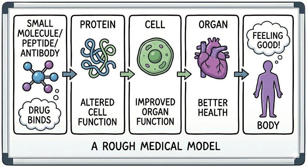 The gap between those two levels of understanding (between hand-wavy abstraction and tangible mechanism) is what we think about constantly. Because closing that gap isn't just about education. It's about how we design better drugs, communicate their value, and make informed decisions about our own biology.