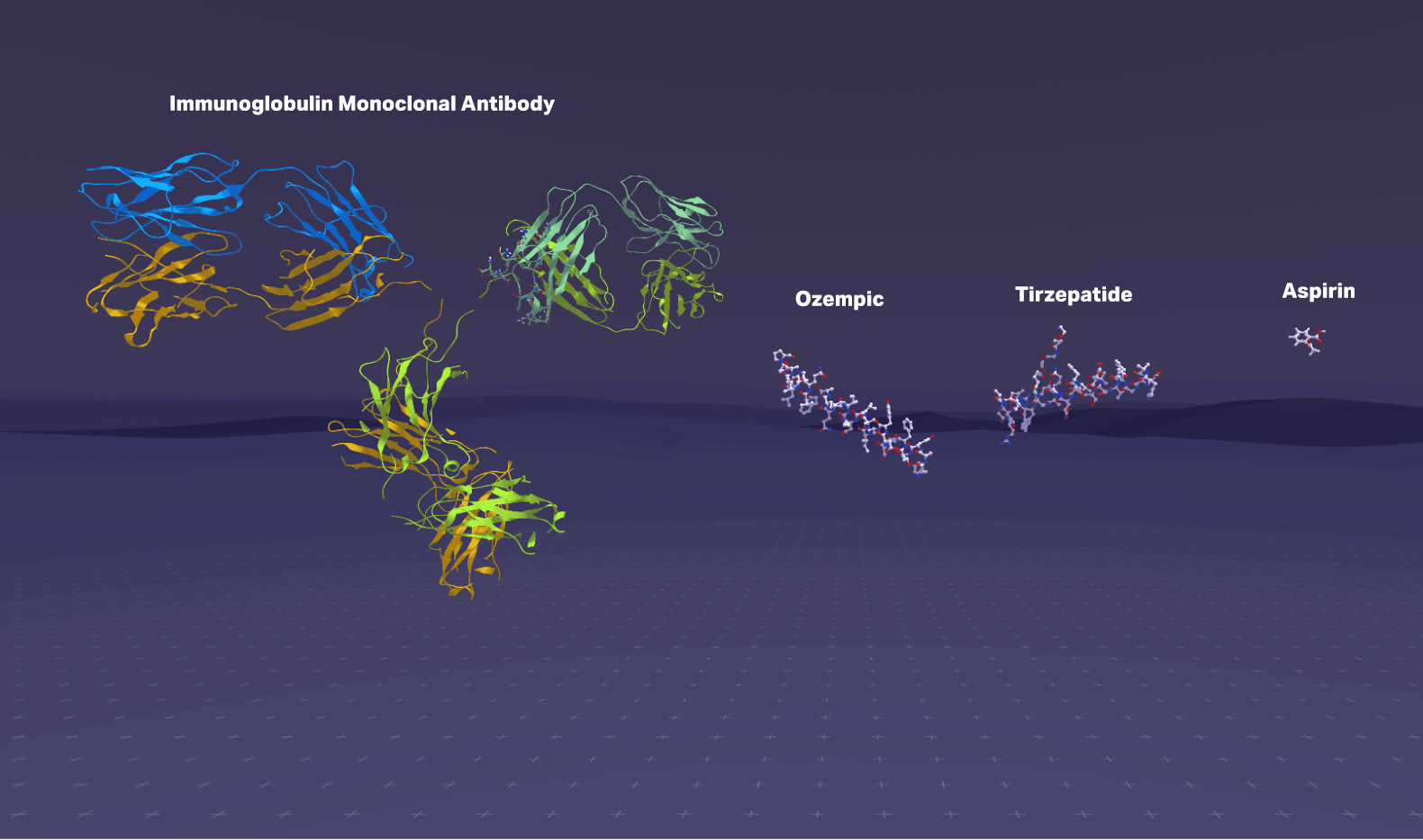 Then I told them something that seemed to genuinely surprise them: the difference between the Ozempic they'd heard about, the small molecule drugs in their medicine cabinet, and the monoclonal antibodies treating cancer patients comes down to atom count.