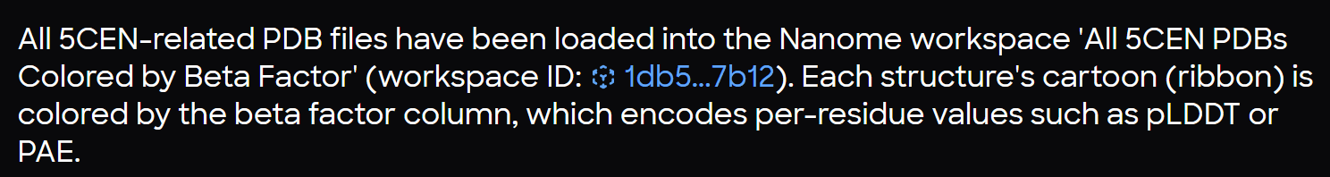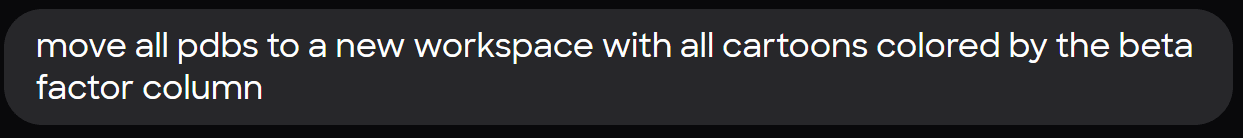 Asking MARA to create a new workspace, move all the pdbs, and color them by beta factor is all it takes for the workspace setup.