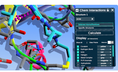 Explore intermolecular interfaces through their chemical interactions predicted by atom type, partial charge, and distance.