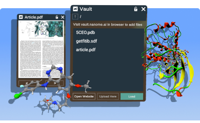 Vault allows for the distribution of files (PDB, SDF, PDF, etc.) into a web interface to be made available inside of Nanome.